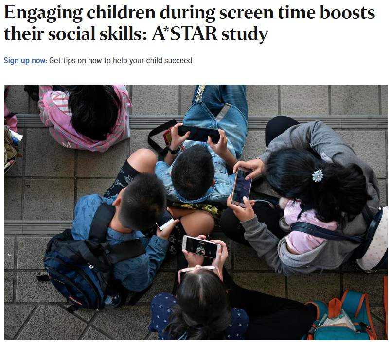 30 Mar 2026 | Engaging children during screen time boosts their social skills: A*STAR study | The Straits Times